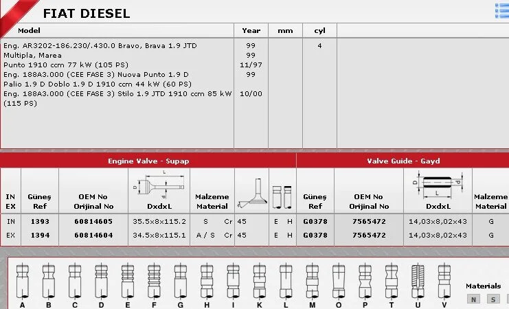 SİBOP TAKIMI 2476 2477 IN 4 EX 4 DOBLO PALIO PUNTO 1.4 FIRE (IN-4 EX-4)