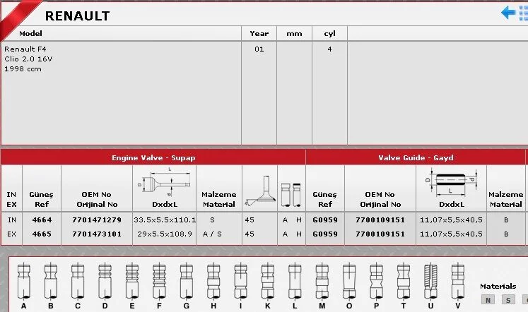 SİBOP TAKIMI 4664 4665 IN 8 EX 8 MEGANE LAGUNA SCENIC 2.0-16V F4R